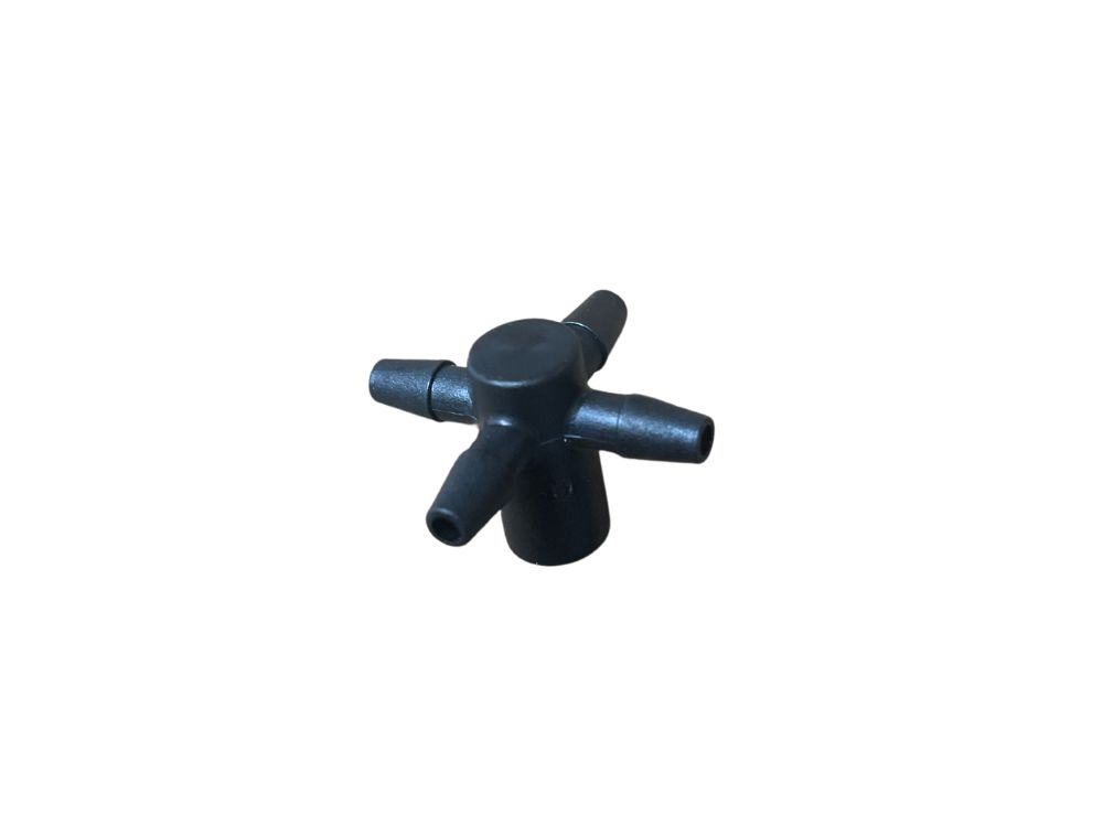 Mikrozłączka czwórnikowa D-5 marki Palaplast to wysokiej jakości element systemów mikronawadniania, przeznaczony do łączenia i rozgałęziania wężyka o średnicy 5 mm. Umożliwia szybkie i szczelne połączenie czterech odcinków mikrowęży, co pozwala na efektywne prowadzenie instalacji w systemach kroplujących.